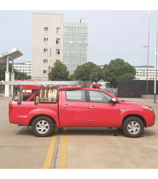 便捷式消防作戰(zhàn)單元由江鈴皮卡、警報(bào)系統(tǒng)、手抬泵、電動(dòng)小推車(chē)、升降裝置、液壓總成、水帶整理架、軟水管U型架、隨車(chē)配套的器材支架及整理箱等組成。