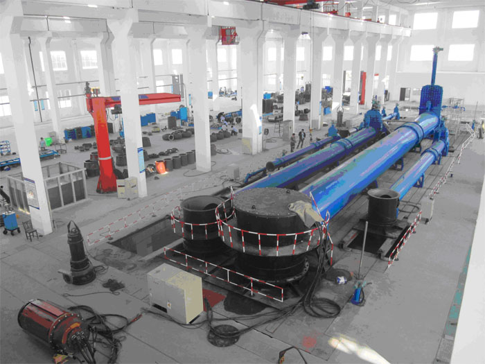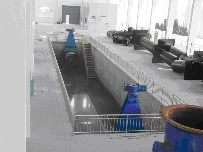 江蘇亞太水務集團公司是以江蘇亞太泵閥有限公司為核心,聯合環保、閥門、疏浚、真空泵各分公司事業部而組建的綜合性集團公司。公司在城東工業園區征地建設現代化廠房、實驗室和辦公樓。為了滿足公司特大型潛水電泵的研發需求,江蘇亞太以實施省科技廳重大科技成果轉化項目為契機,投入2000萬元興建現代化大型水泵試驗臺。該試驗臺測試水池容量達10000m3,管路配置從50mm到2200mm,試驗功率最大達2600kW,電壓從380V-10000V,測試系統實現了全自動信息采集和處理,配置了最先進的參數采集傳感器,數據傳入計算機收集處理管理。泵綜合試驗臺經國家排灌及節水設備產品質量監督檢驗中心驗收,達到ISO9906:1999《回轉動力泵水力性能驗收試驗1級和2級》中的2級精度要求。