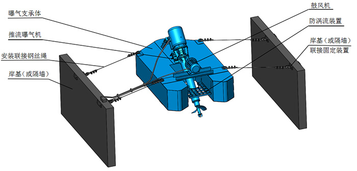 該設備作為于污水處理廠的新建曝氣設備選用,更可用于污水處理廠的升級改造,也可作為解決老污水處理廠污泥沉降問題的工具使用,運用十分廣泛。它的功率從4~45KW,直接由鋼絲繩固定于岸基或隔墻,無需改動固有設施,增減設備安裝方便,靈活度高。